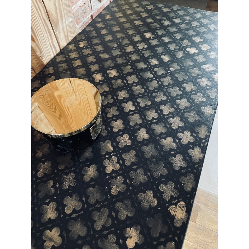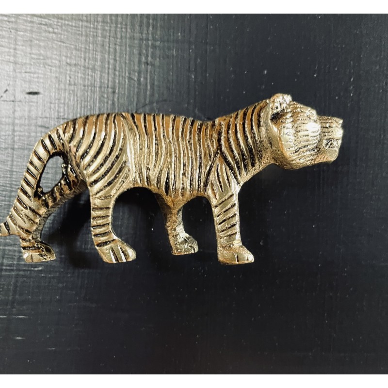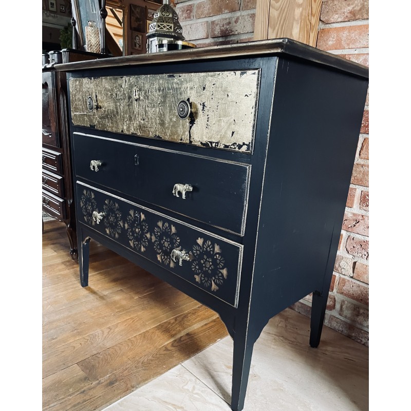 Komoda w kolorach czerń i złoto. Wykonana z drewna. Piękne uchwyty -tygrysy.