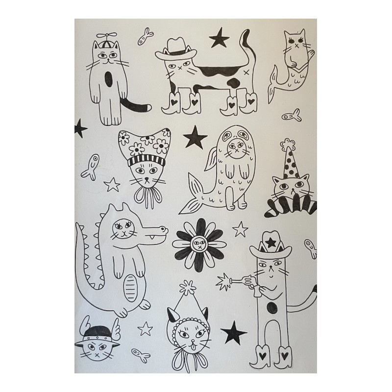 Obrazek z wizerunkami kotów w różnych przebraniach.