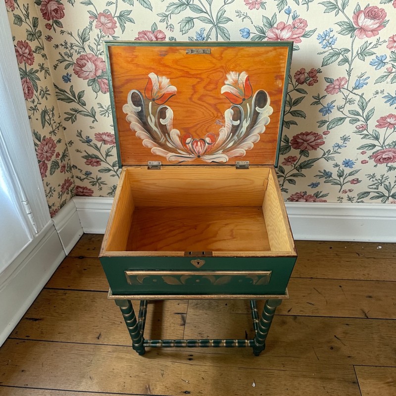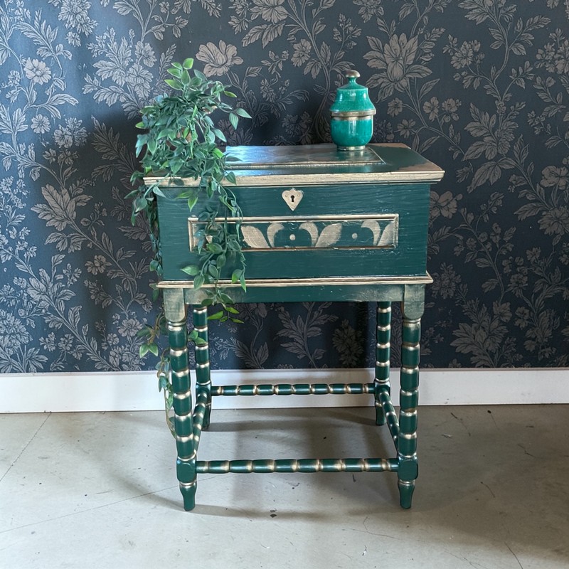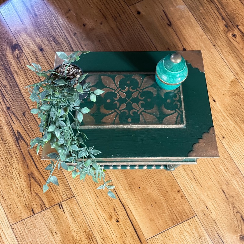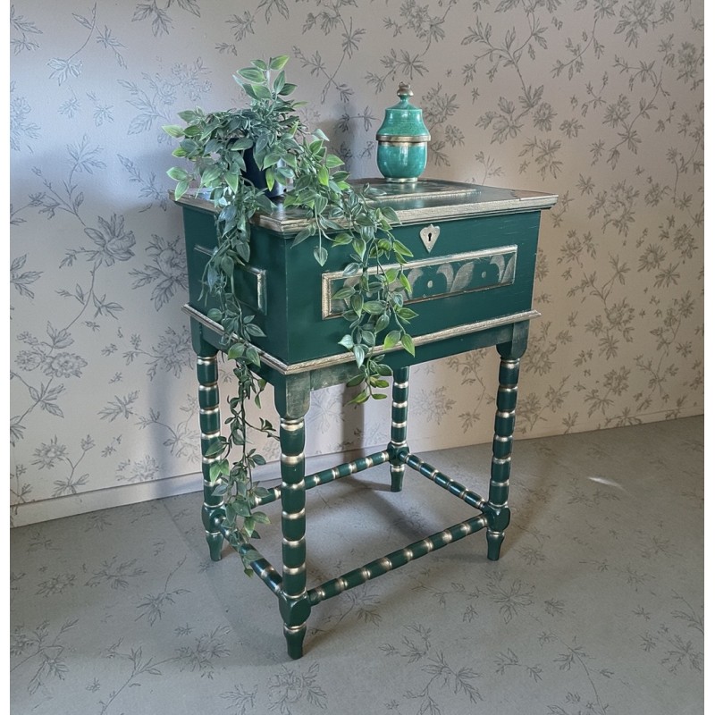 Drewniany Niciak w kolorze zielonym z elementami złota.